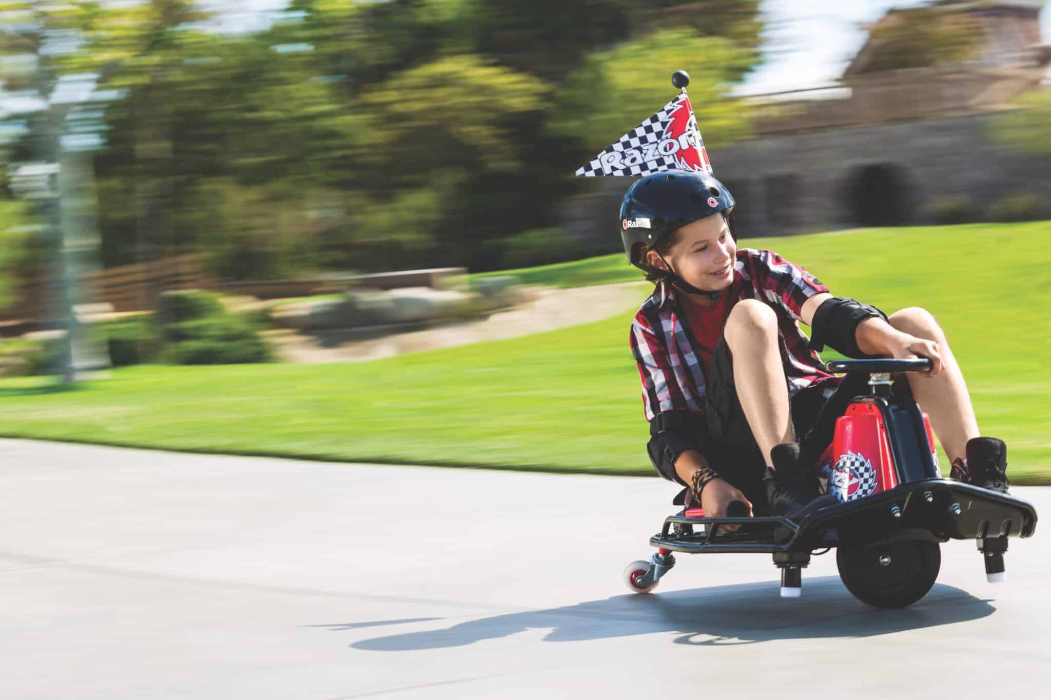 Crazy Carts – de ultieme manier om thuis te racen en te driften! Met de Razor Crazy Cart draai je moeiteloos om je as en maak je spectaculaire drifts, waardoor iedereen kan leren driften. Op deze pagina vind je een overzicht van de verschillende Crazy Carts, geschikt voor zowel kinderen als volwassenen. De nieuwste modellen zijn nu uitgerust met een oplaadbare lithium accu, voor kortere laadtijden en een langere levensduur van de batterij.