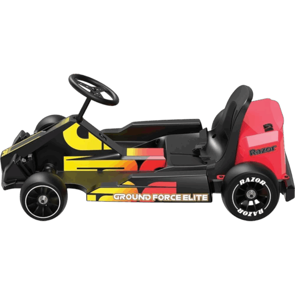The Ground Force Elite combines shifter kart-styling, unibody construction with great maneuverability and enhanced steering engineered for performance. It is Razor’s first 36-voltelectric go-kart for teens that includes a forward/reverse drive switch which allows for greater control and maneuverability in tight spaces.