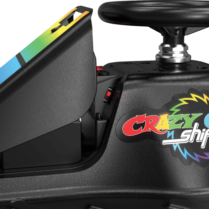 – Snelheid: Versnelling met variabele snelheid tot 13 km/u in de standaardinstelling HOOG. Met een verborgen schakelaar kunnen ouders de Crazy Cart Shift Lightshow van hun kind beperken tot een topsnelheid van 4 km/u voor jongere rijders en beginners.