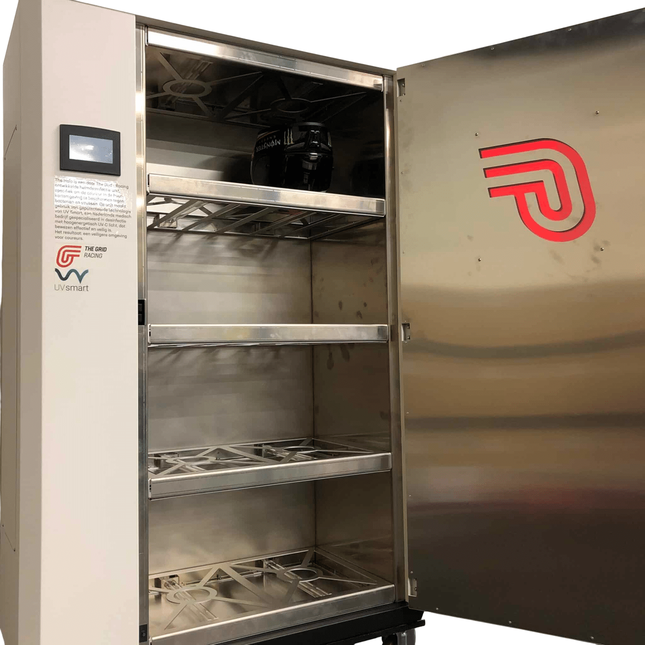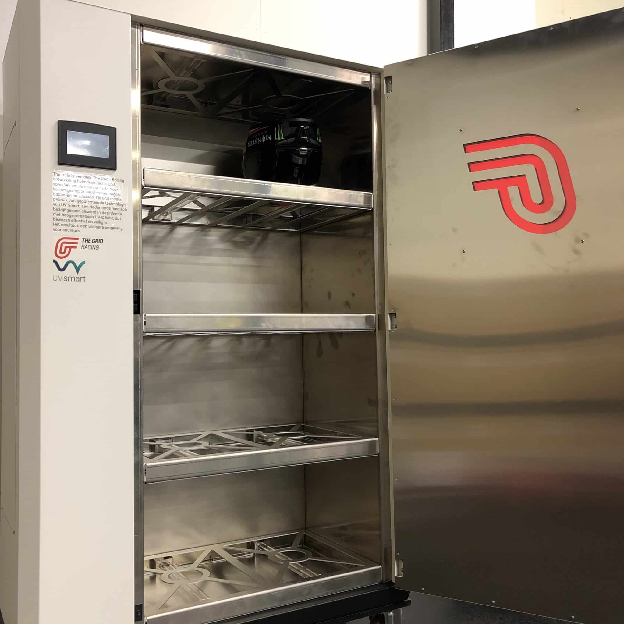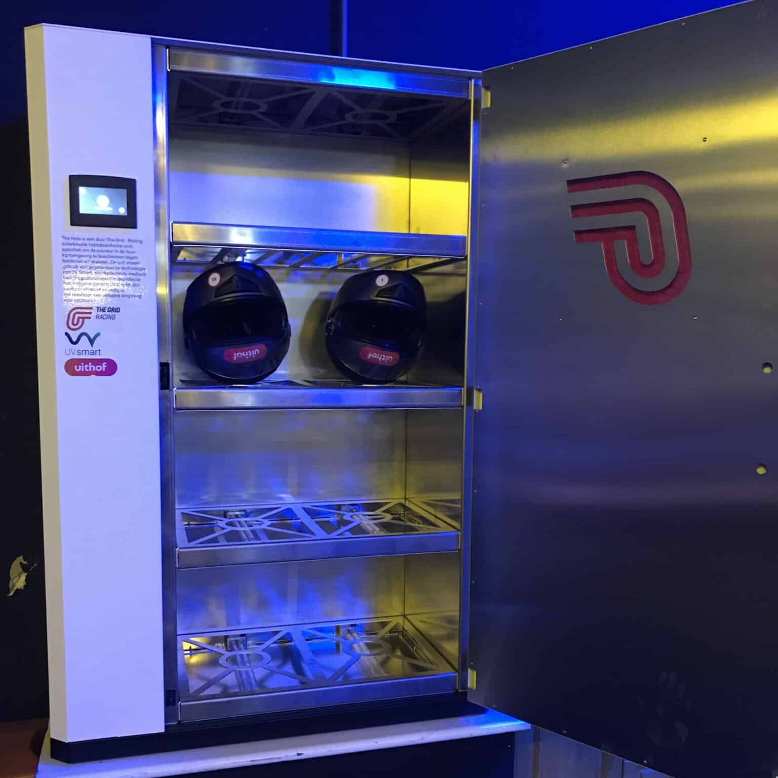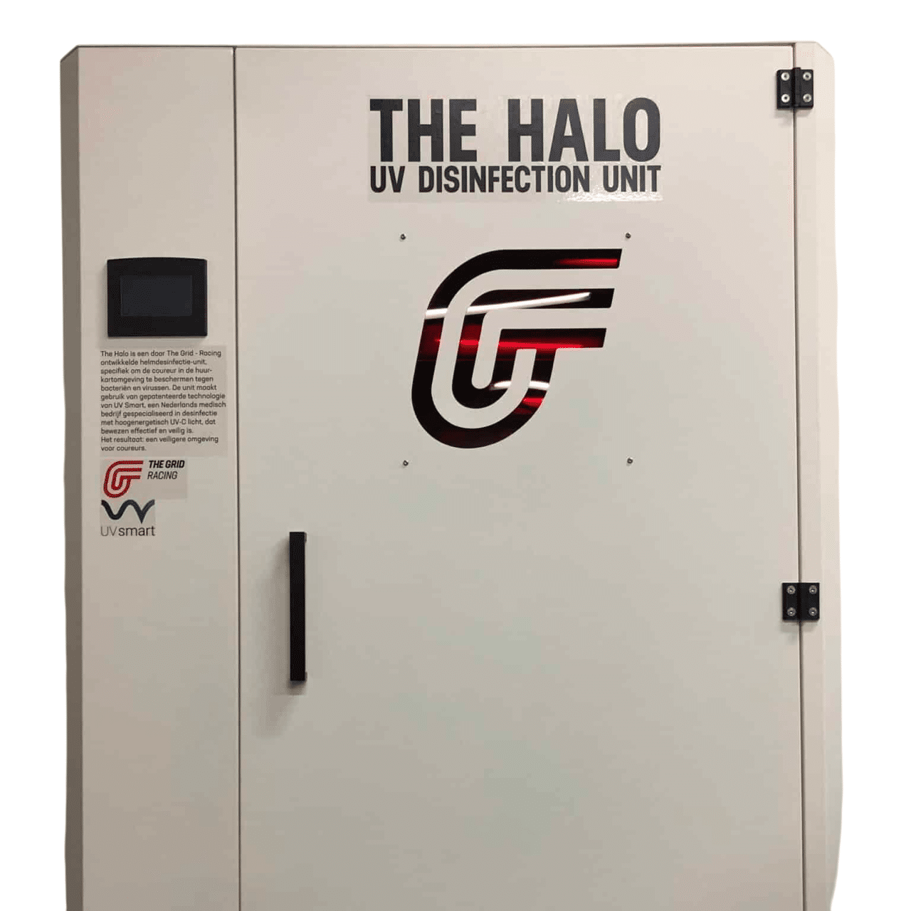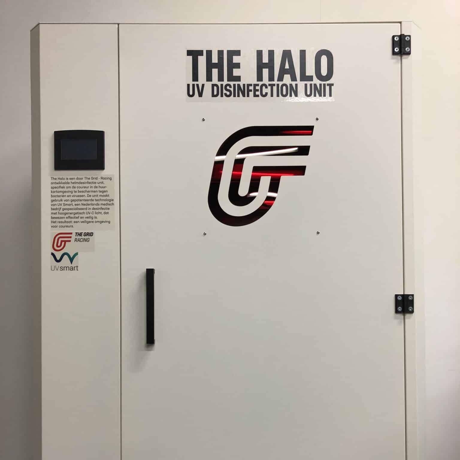 The Halo is een helm desinfectie kast ontwikkeld door The Grid – Racing en UV Smart, om de rijder te beschermen tegen bacteriën, virussen en ziektekiemen.